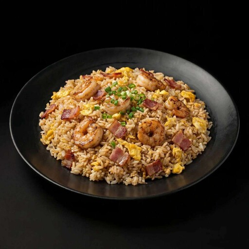 Рис, креветка, бекон, яйцо, лук зелёный. *Внешний вид блюда может отличаться от фото на сайте